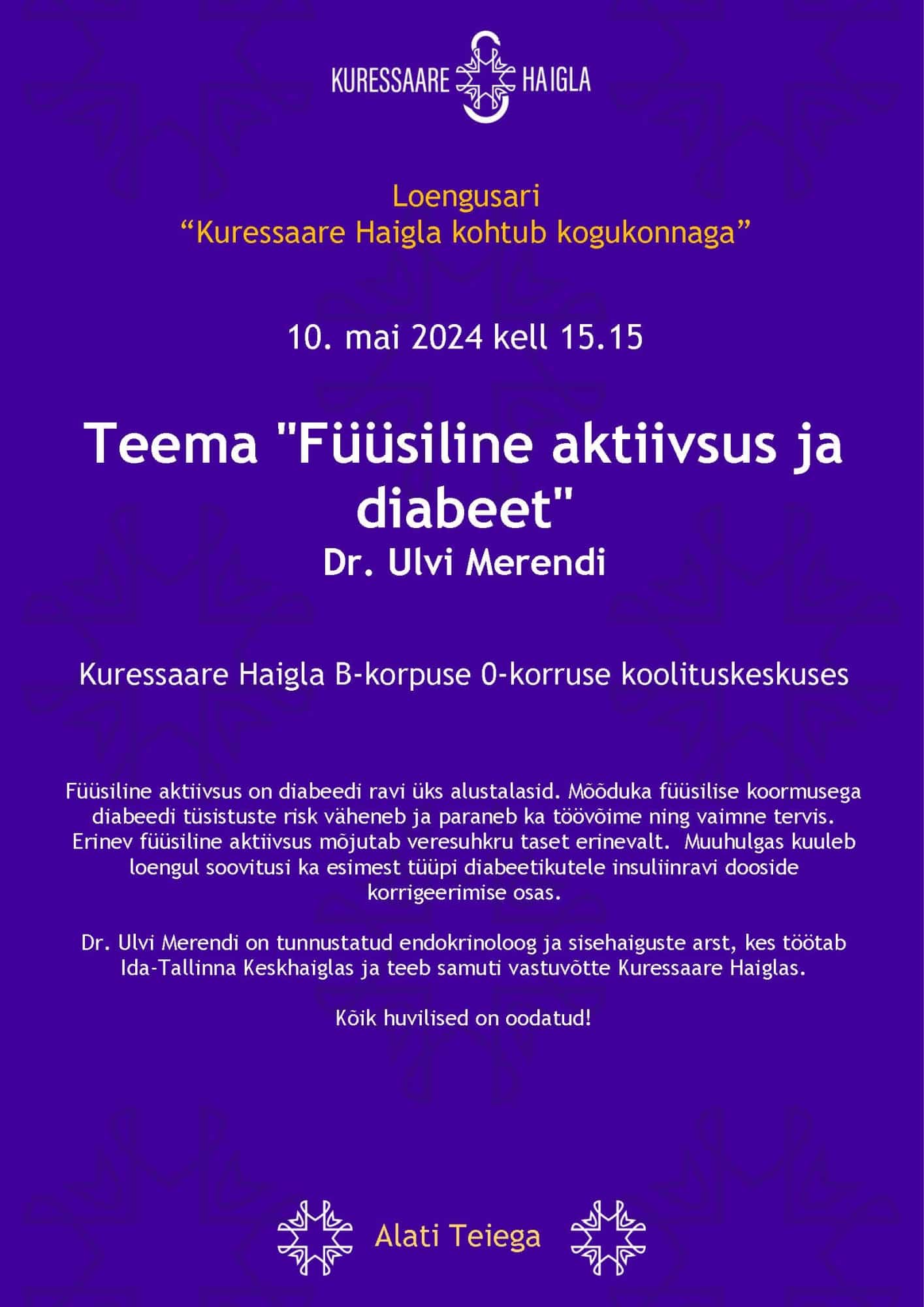 10. mail toimuv kogukonnaloeng keskendub seekord diabeedile ja füüsilisele aktiivsusele