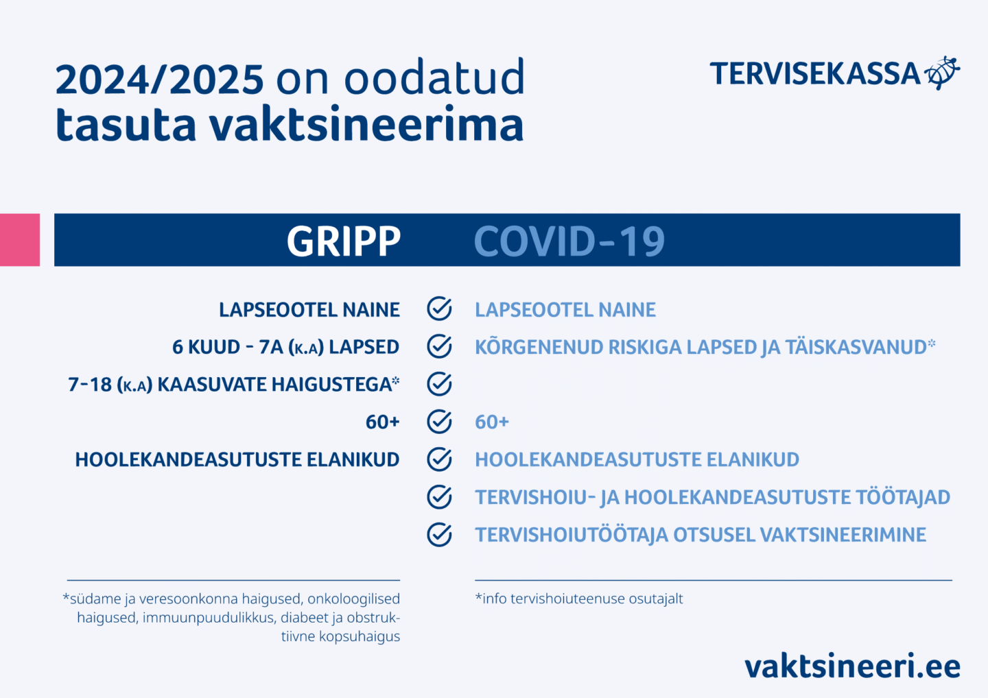 2024/2025 tasuta vaktsineerimised gripi ja covid-19 vastu