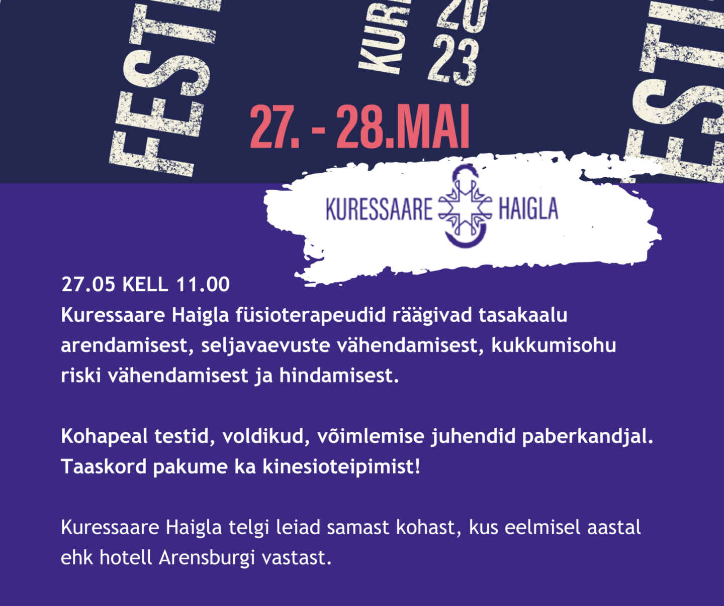 27.05 ootame Sind Tänavafestivalil külastama Kuressaare Haigla telki!