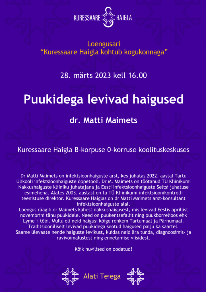 Informatsioon kliinilise uuringu kohta Aprillis 2023 algab inimeste kaasamine Eesti Haigekassa, Viljandi, Saare ja Valga maakonna ühisprojekti PAIK 2022-2025, mille raames on planeeritud sihtgrupi hulgas kliiniline teadusuuring, hindamaks mitmete tervishoiu…