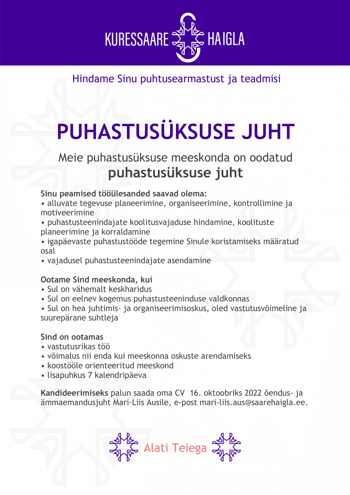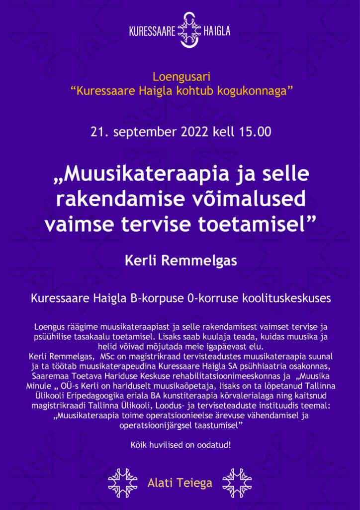 “Kuressaare Haigla kohtub kogukonnaga” 21. sept kell 15.00!