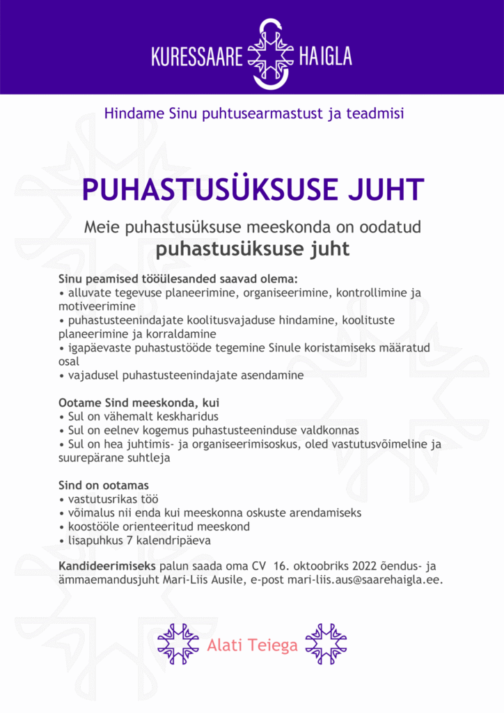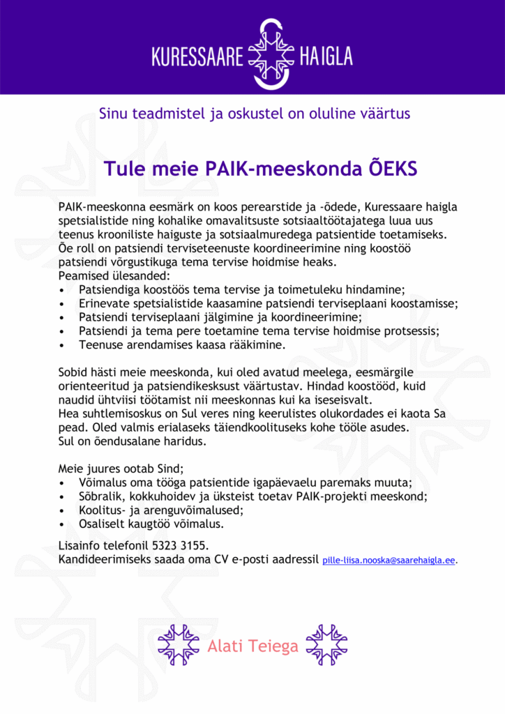 Kuressaare Haigla kutsub enda sekka opi-õde!