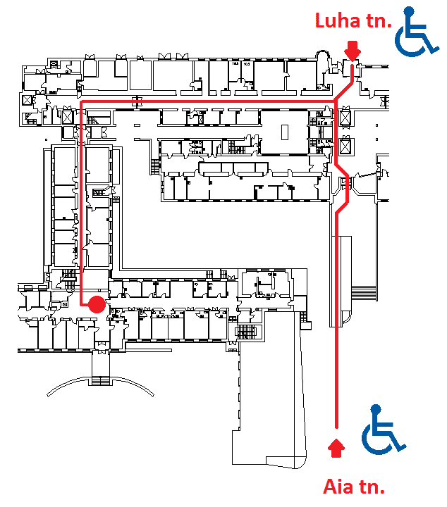 Taastusravile tulles palume siseneda haigla peauksest (Aia tänava poolt) või kiirabi poolsest uksest (Luha tänava poolt). Liikumise skeem
