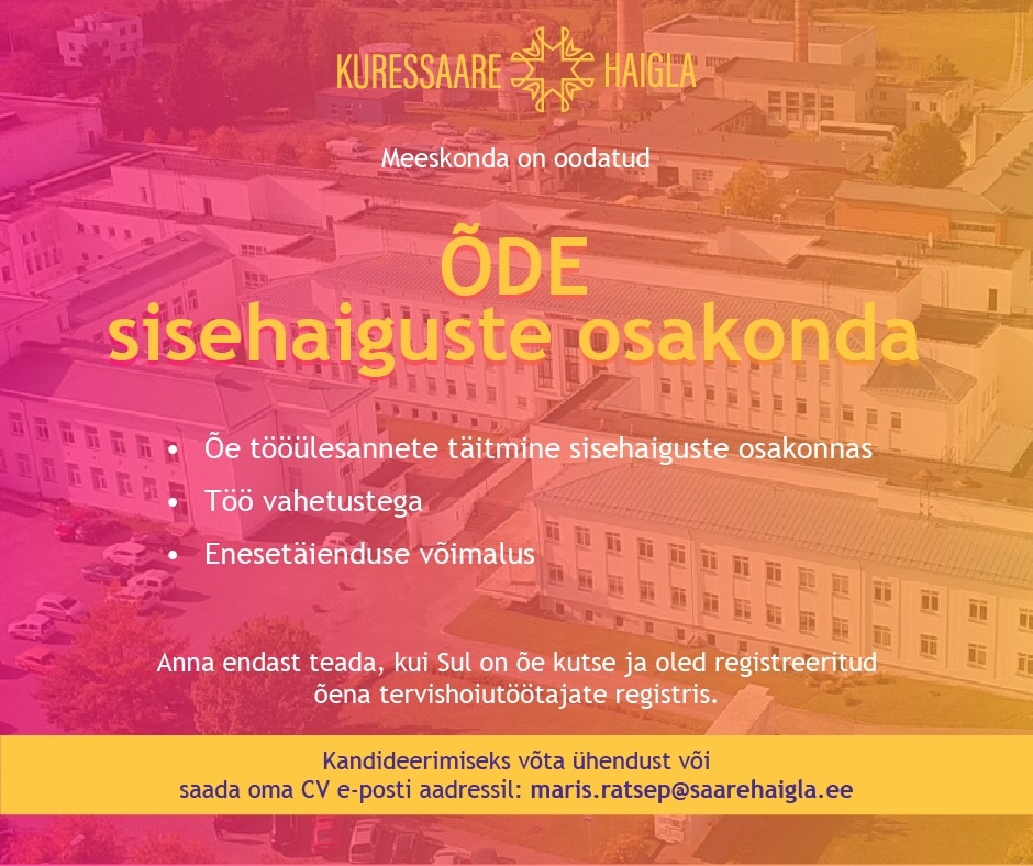 Hea meel on teatada, et Kuressaare Haiglas alustab vastuvõtte neuroloog dr. Eva Paas! Dr. Paas endast: “Olen Saaremaal end alati hästi tundnud. Seda juba lapseeast, kui vanaisal tema talus külas…