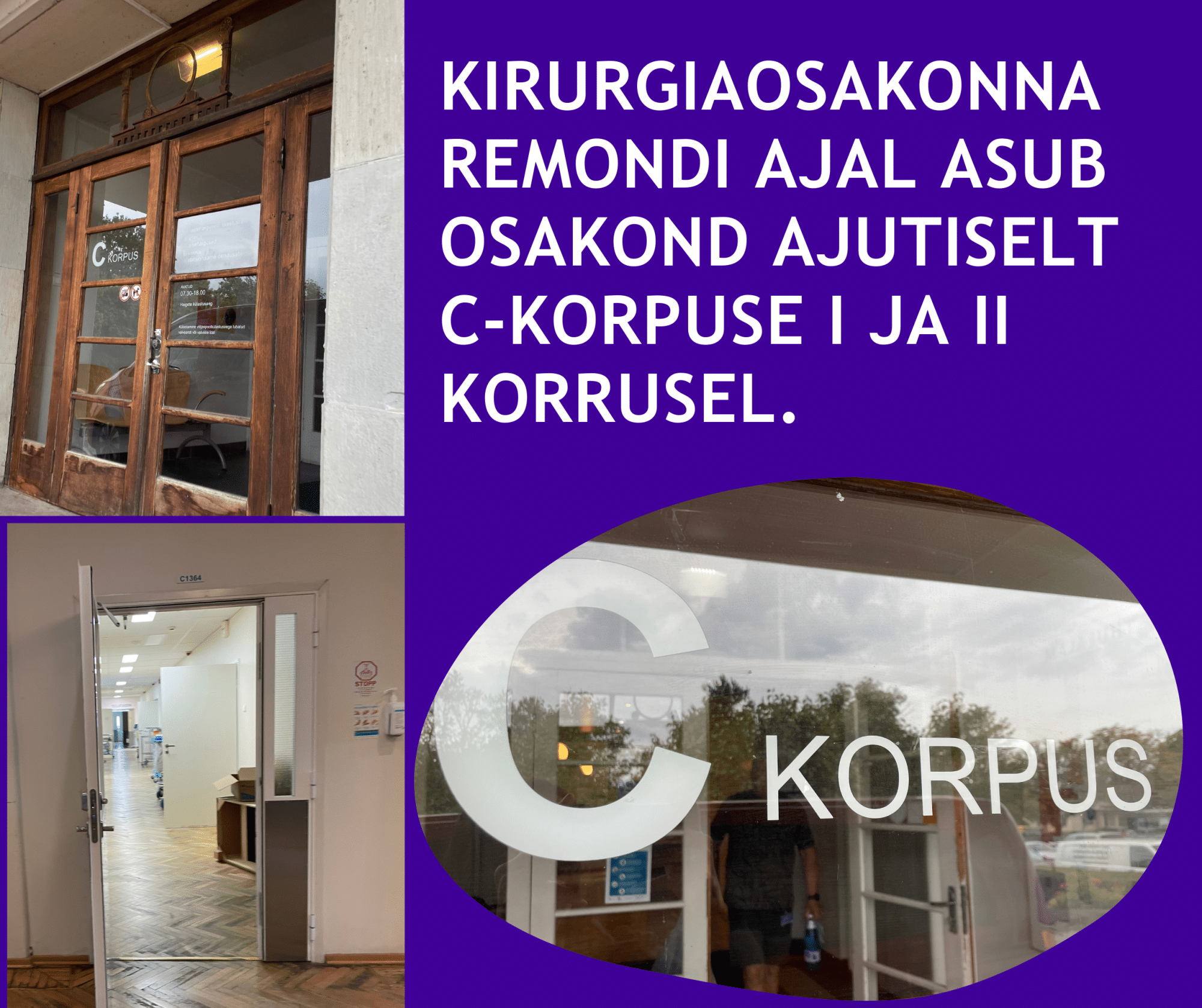 Eile, 21.08, kolis Kuressaare Haigla kiruriga osakond. Seni, kuni kirurgia osakond saab uue ja värske ilme, asub osakond ajutiselt C-korpuse I ja II korrusel.
