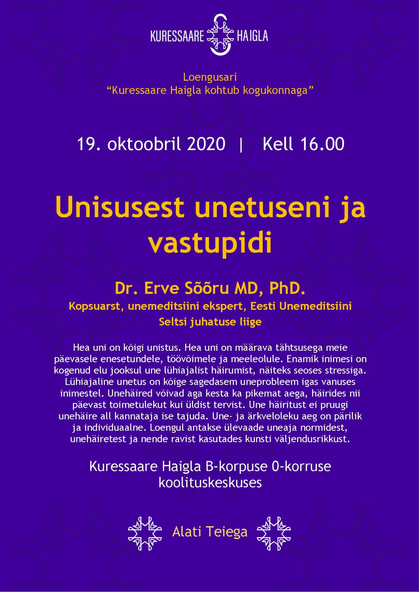 19. oktoobril, 2020 kell 16.00 toimub loeng „Unisusest unetuseni ja vastupidi”.