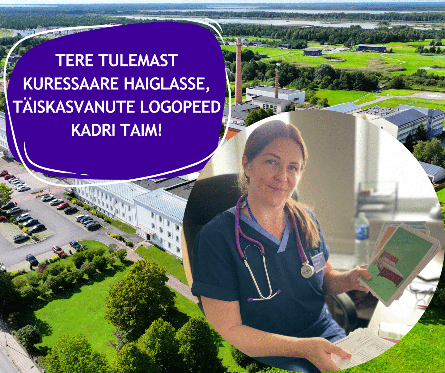 Kuressaare Haigla meeskonnaga on liitunud täiskasvanute logopeed Kadri Taim, kelle tegevusvaldkond on saarlastele ääretult suureks toeks! Tervitame Kadrit ning soovime talle sujuvat sisseelamist ja toredaid patsiente!