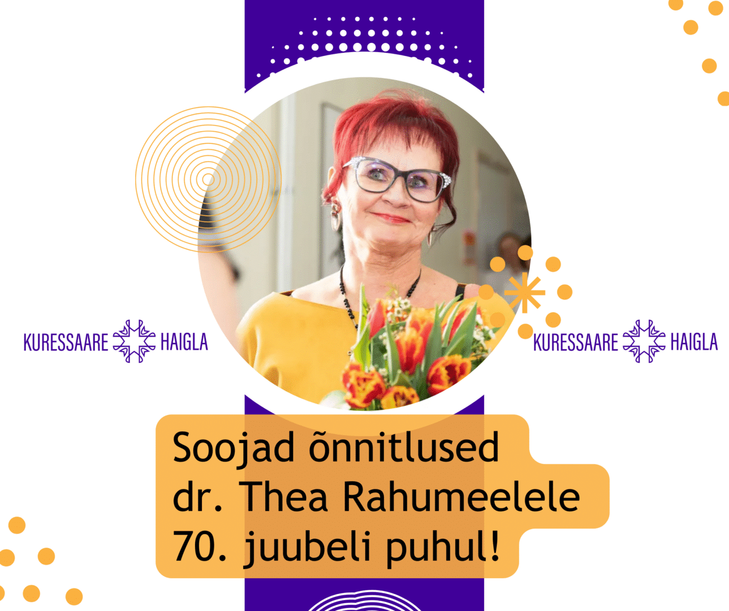 Kuressaare Haigla soovib dr. Rahumeelele jätkuvat energilisust, elurõõmu ning muidugi tervist!