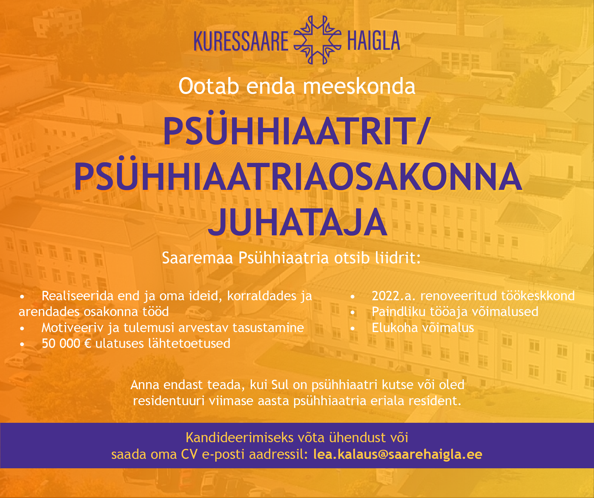 Tööpakkumine – Psühhiaatriaosakonna juhataja